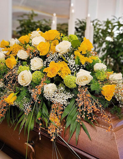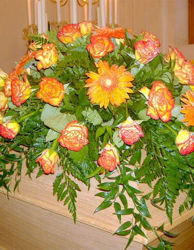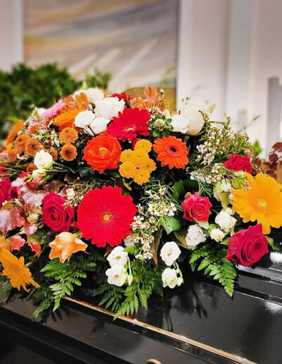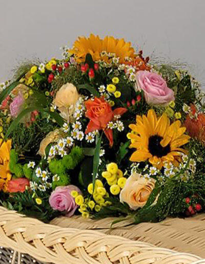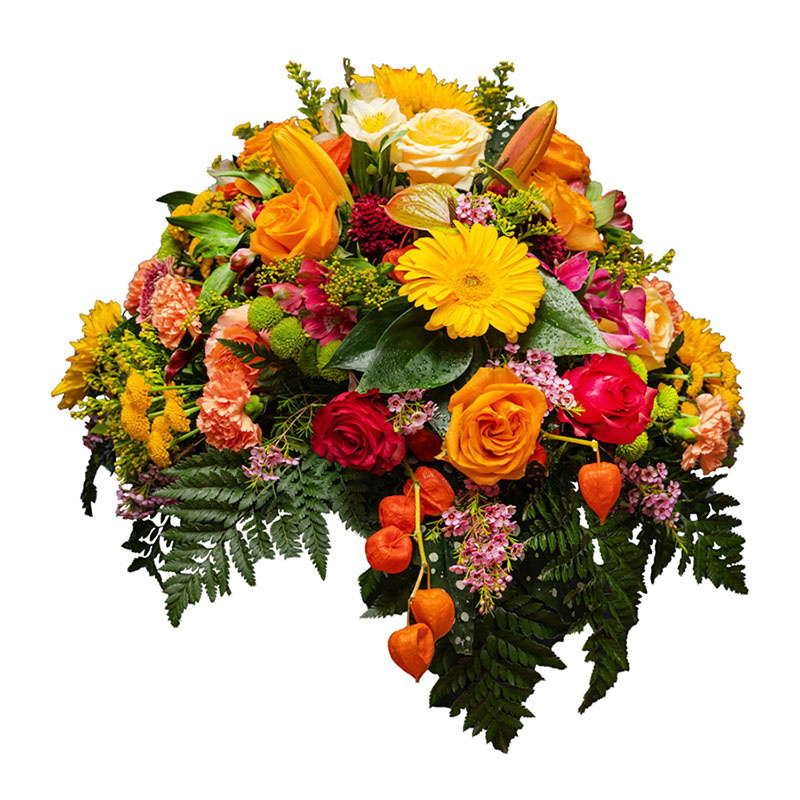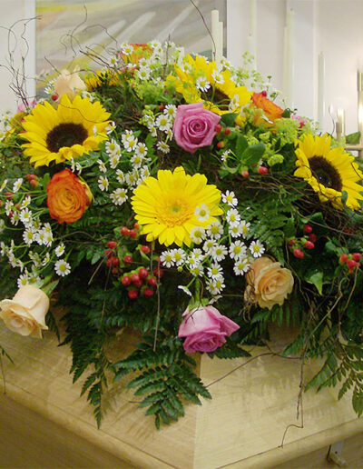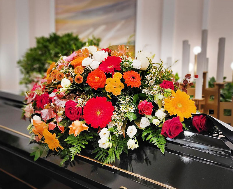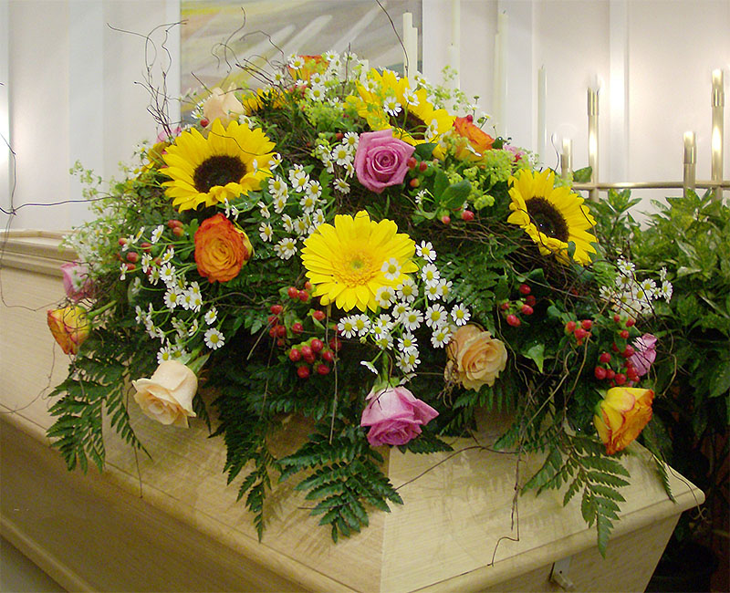 Selbstverständlich sind wir bemüht, für Sie die Lieblingsblumen und Farben Ihrer zu verabschiedenden Person zu einem wunderschönen Sarggesteck zu verarbeiten. Gerne stehen wir Ihnen zur persönlichen Beratung zur Verfügung.